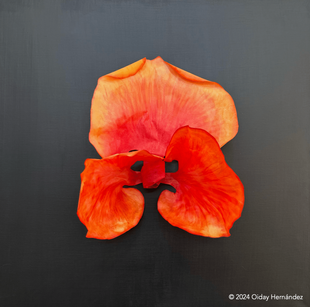 Desde entonces, no he dejado de trabajar con especies nativas del Valle de México. Me interesa su historia, su resistencia y su belleza particular. Realicé, por ejemplo, una obra con la flor del frijol ayocote (Phaseolus coccineus), elaborada en papel de arroz teñido con acuarela (Figura 4). Cada planta tiene algo que decir. Lo único que necesitamos es detenernos a escuchar.